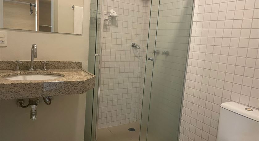 As Suítes Standard Casal ou Individual possuem 1 cama box casal, armário para roupas e malas, bancada com cadeira para trabalho, black out na janela, ar condicionado, frigobar, TV, internet wi-fi, banheiro com amenities, fechadura eletrônica, acesso com cartão.