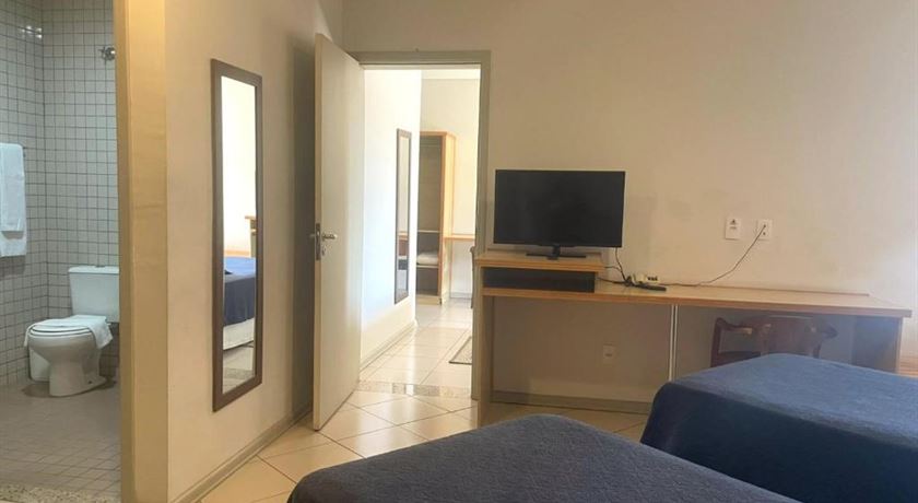 As suítes conjugadas são 2 suítes interligadas por uma porta, com 2 banheiros. Em uma das suítes possui cama box casal queen + cama box solteiro e na outra 2 camas de solteiro, acomoda 5 pessoas, varanda com vista para piscina, mesa de apoio com 2 cadeiras, armário para roupas e malas, bancada com cadeira para trabalho, black out na janelas, espelho grande, ar condicionado, frigobar, tv, internet wi-fi, banheiro com amenities e secador de cabelo, fechadura eletrônica, acesso com cartão.