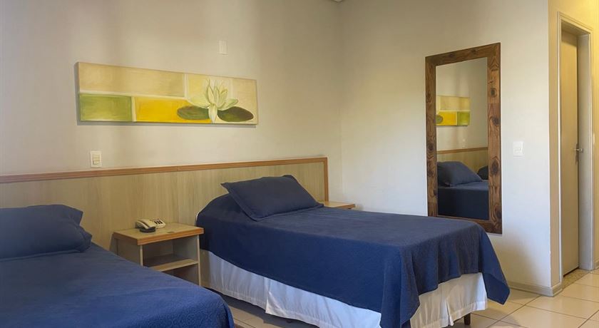 As Suítes Dupla Standard Solteiro possuem 2 camas box de solteiro, armário para roupas e malas, bancada com cadeira para trabalho, black out na janela, ar condicionado, frigobar, tv, internet wi-fi, banheiro com amenities, fechadura eletrônica, acesso com cartão